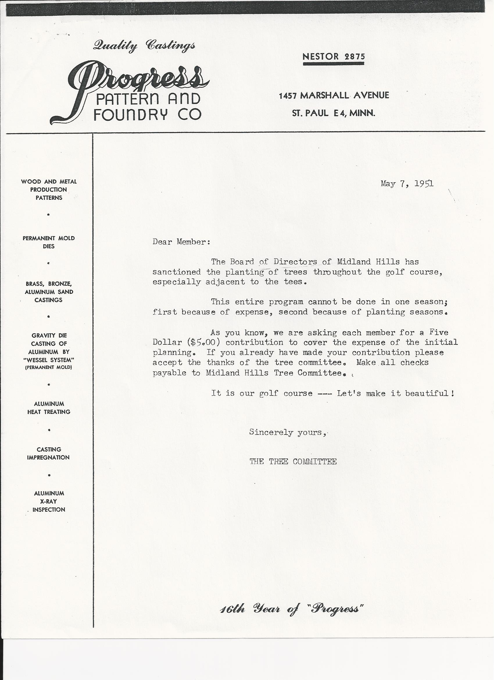 So how did we go from the photo above to where we are today? In the 1950’s, America went through the “Beautification Movement” stage in which it became very popular to plant trees. Trees in your neighborhood, parks as well as golf courses. This is what some people call the largest demise in Classic Golf Course Architecture. Trees were cheap, plentiful and planted by the 1000’s. Unfortunately, Midland disregarded their appreciation for having a Classic Golf Course designed by one of the greatest Architects of all time and bought into the idea of mass plantings to “fill voids” around Greens, Tees and in between Fairways. The letter below is from 1951 which shows where Midland changed their future of the look and feel of the golf course.
